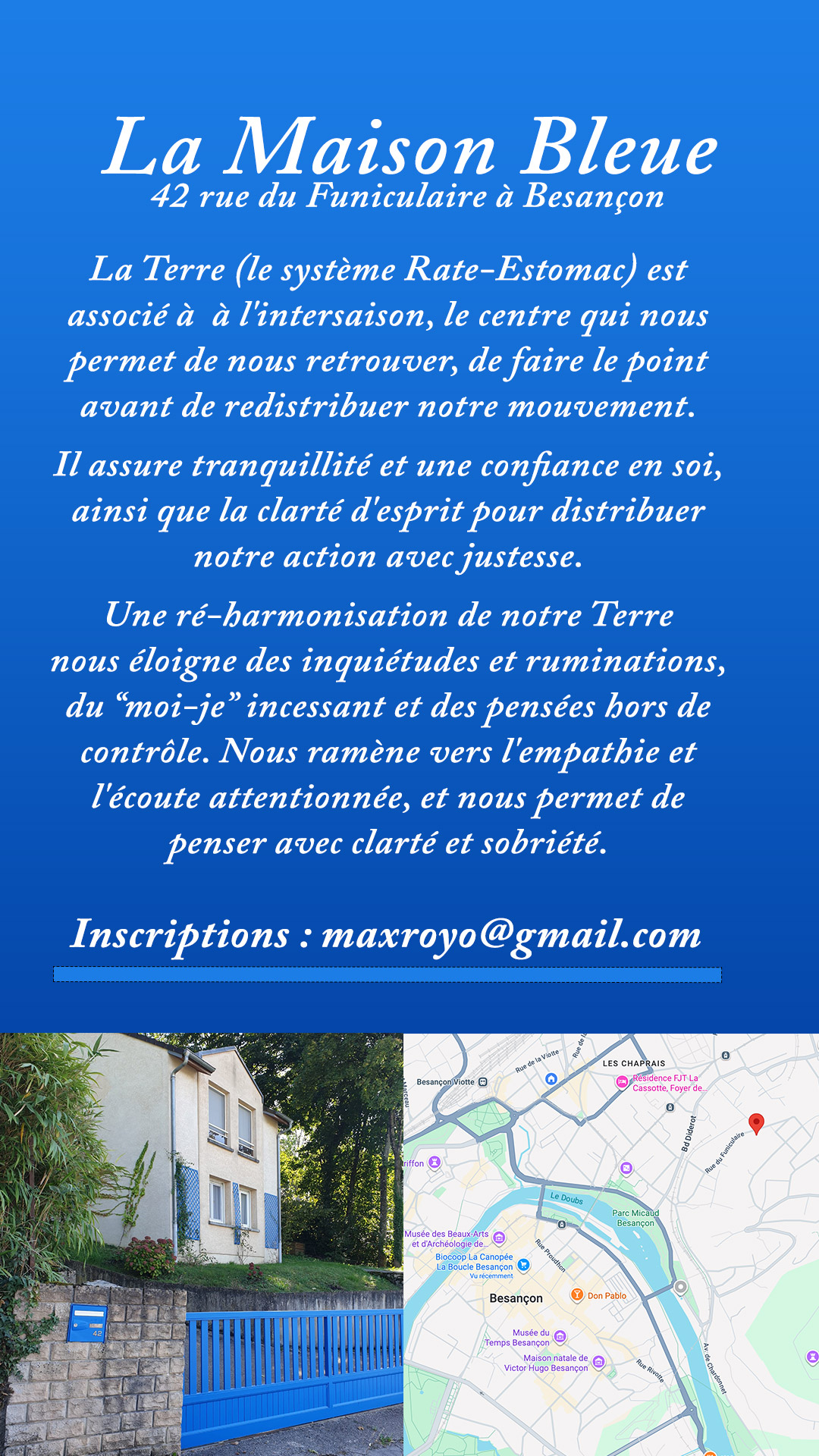 – Lieu : La maison Bleue, 42 rue du Funiculaire à Besançon